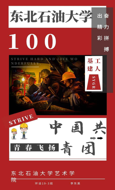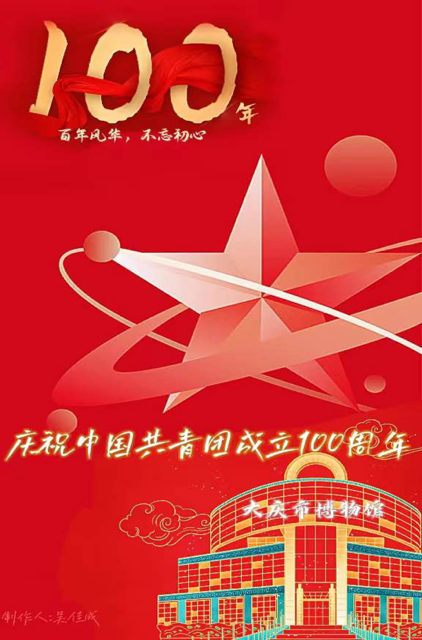 海报的设计不仅融入了公司及大庆市的特色标识,还增添了庆祝中国共青团成立一百周年的元素。一幅幅创意作品以视觉设计展现百年征程,用艺术语言描述光辉岁月。值此百年之际,我们将用行动传达情感,让红色基因、时代薪火代代相传。