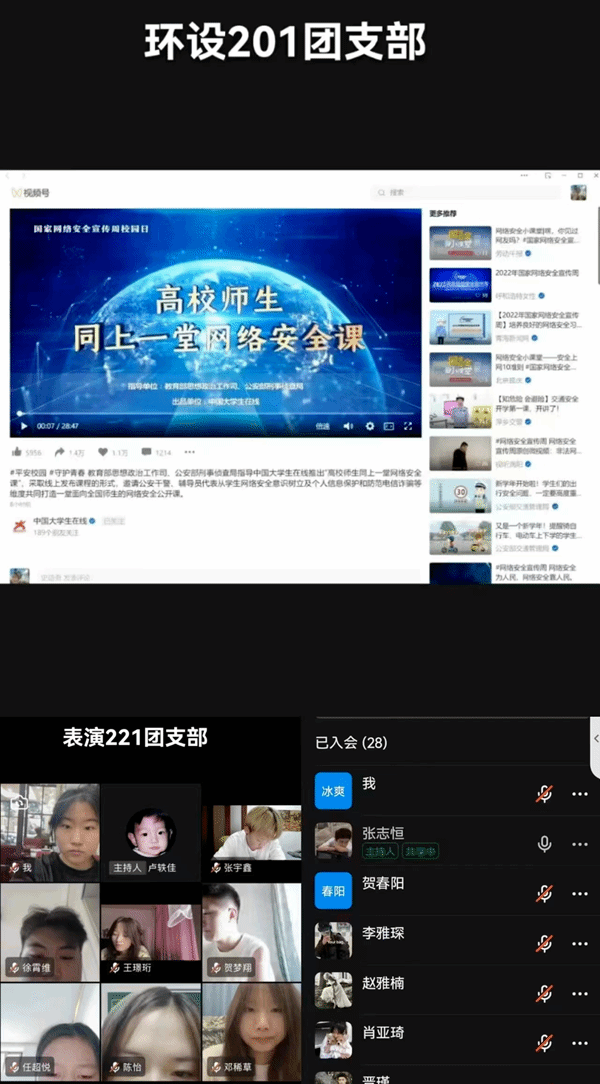 公司各班团支部通过钉钉平台组织开展班会“同上一堂网络安全课”,全院共有39个教学班600余名同学参加了此次班会,在班会中讨论宣传网络安全知识,提高员工网络安全意识,增强识别和应对网络危险的能力,预防和应对网络暴力等方面知识,同时播放国家网络安全周公益短片。