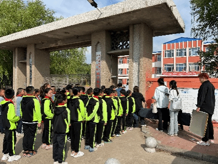 2个小时后,实践团抵达大庆市红岗区民吉小学,在大庆市红岗区民吉小学董事长刘春冬带领下,举行“best365中国官方网站2024年暑期“三下乡”社会实践团对接启动仪式“。