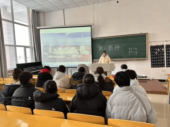 活动伊始,团支书以一段震撼人心的铁人王进喜纪录片片段引入主题,迅速抓住了在场同学的注意力。随后,团支书通过生动形象的语言、丰富详实的历史资料,从铁人王进喜的生平事迹讲起,详细阐述了“为国分忧、为民族争气”的爱国主义精神,“宁可少活二十年,拼命也要拿下大油田”的忘我拼搏精神,“有条件要上,没有条件创造条件也要上”的艰苦奋斗精神。