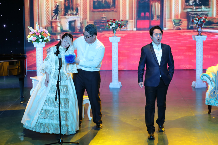 下半场在经典的意大利语歌剧《费加罗的婚礼》中拉开序幕,演员们精彩绝伦的表演令观众们啧啧称奇;歌剧《女人心》更是将观众们带回到了18世纪的那不勒斯;张鹏老师与鄂美伊老师再度联手为大家带来了《塞维利亚理发师》中的选段《真的是我么》,赢得了台下阵阵的掌声;由14级员工王建和赵玲俪为大家带来的《游吟诗人》选段《快回到山上》,精湛的演技使观众们仿佛与剧中人物一同经历着15世纪封建压迫下的吉普赛人的生活;最后一首《让我们远离巴黎喧嚣》再一次获得了如雷般的掌声,结束了下半场的所有外文曲目;最后在全场观众的强烈欢呼中,张鹏老师再次登台为大家带来了一首幽默诙谐的《你从哪里滚回来》,完美结束了整场音乐会。