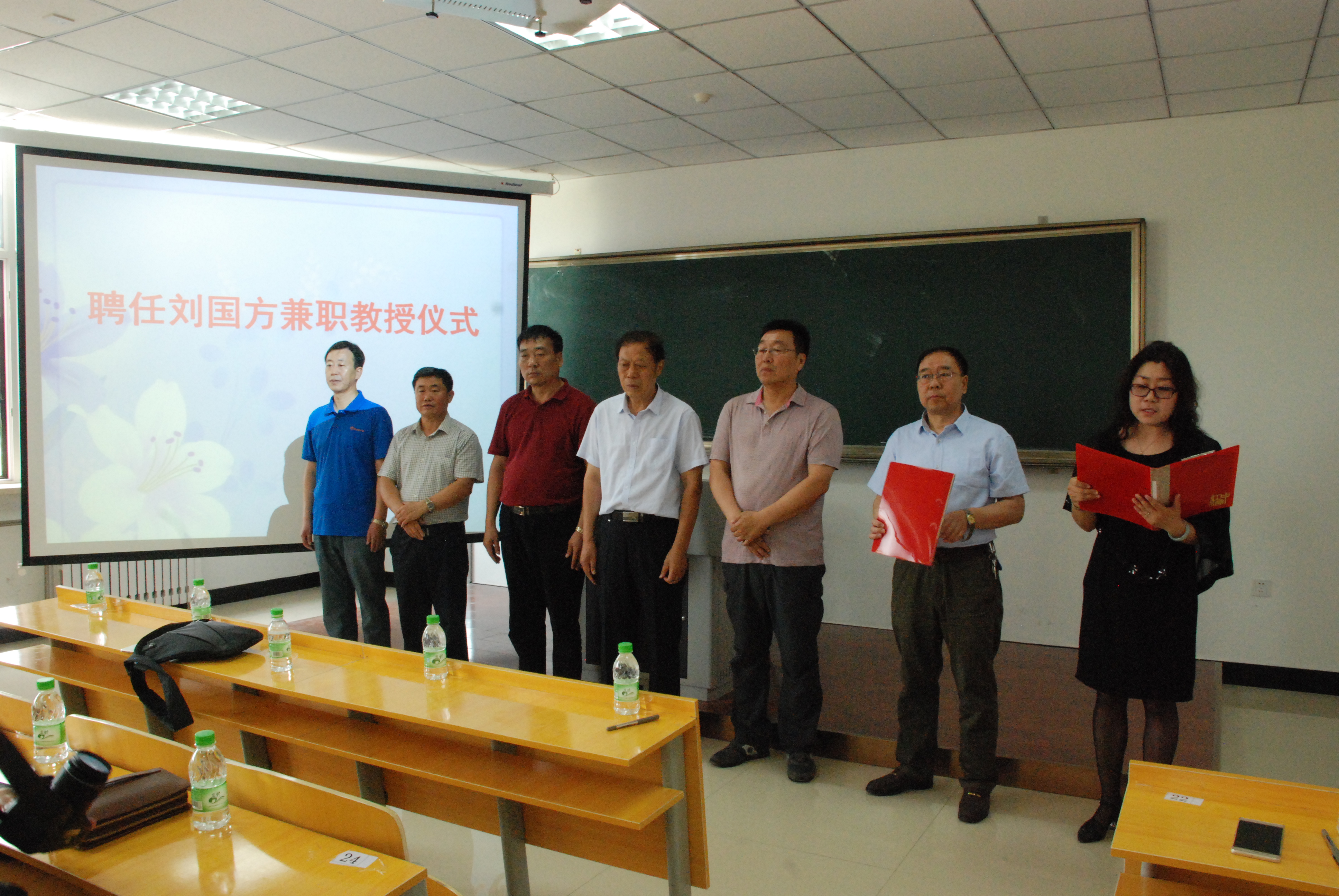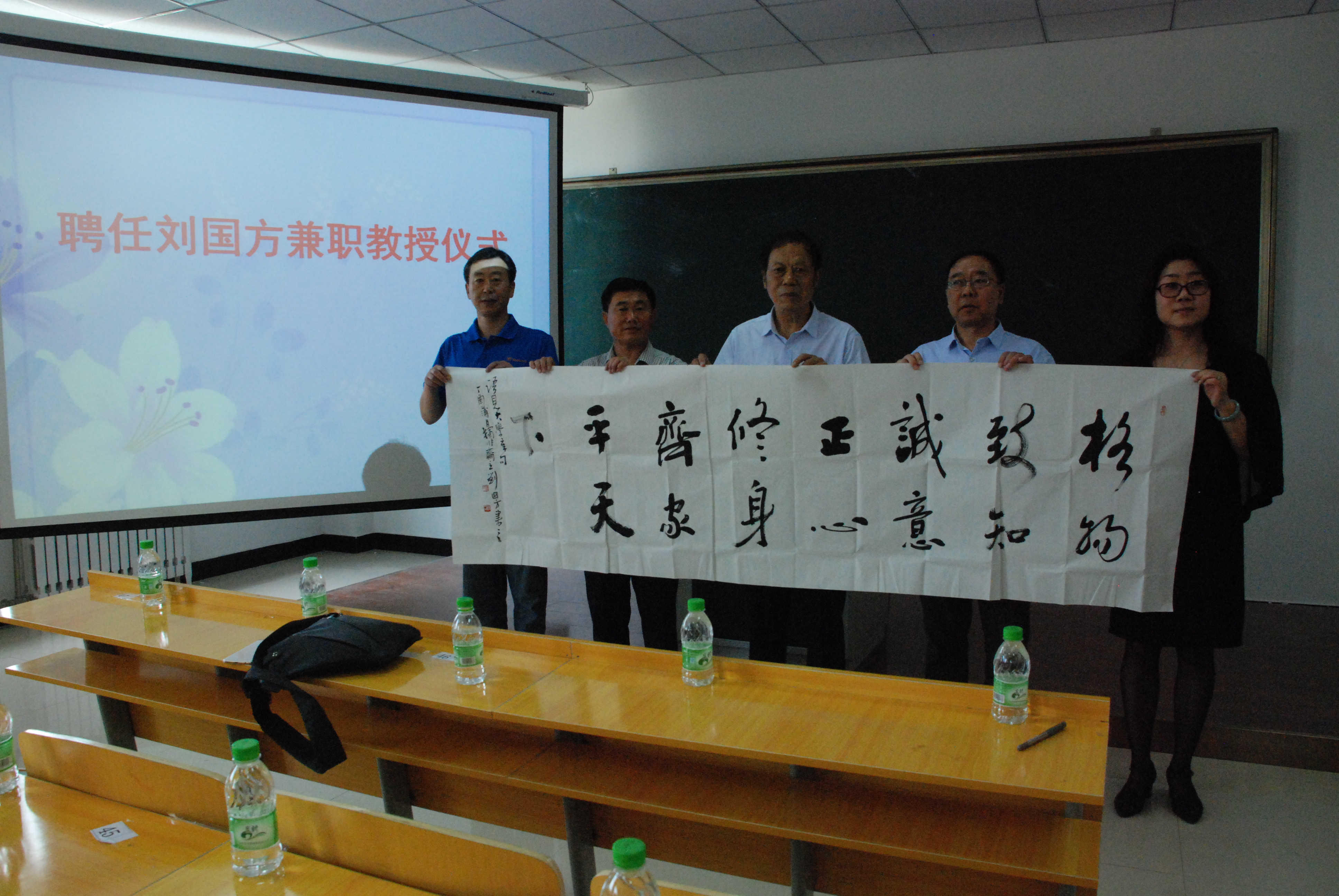 6月26日,best365中国官方网站聘任河南书法家刘国方兼职教授仪式在美术楼204教室举行,校工会主席张斌、best365中国官方网站领导班子及美术系师生参加了仪式,仪式由程显波书记主持。