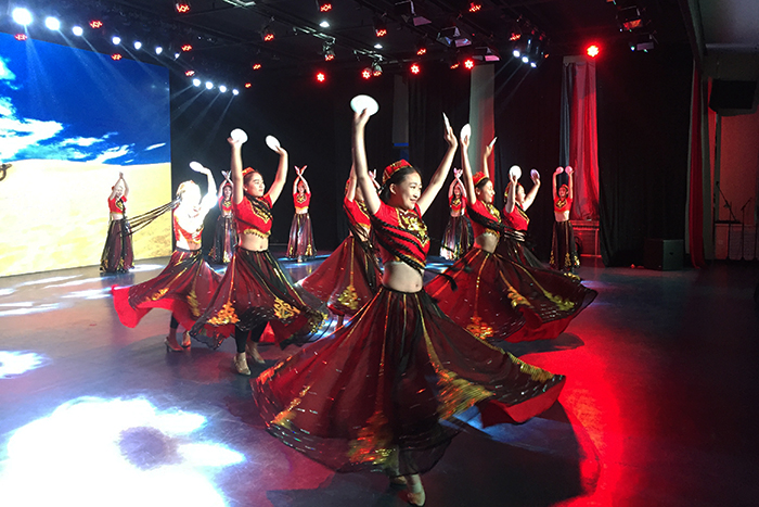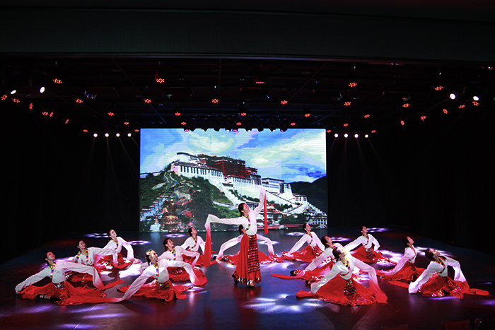 演出现场座无虚席,青春洋溢的流行舞拉开了晚会的序幕.来自2016级新生张晓华表演的独舞《额尔古纳河的女儿》动作优美,引人入胜;藏族舞蹈《心声》通过生动有力的身体语言,诠释了改革开放以来,祖国日益繁荣昌盛的盛况。由best365中国官方网站舞蹈系团队研发创作的精品课程花棍舞《东北浪》精彩地展示了黑龙江花棍的地方特色、文化内涵、动律动势、角色形象和风格特色。