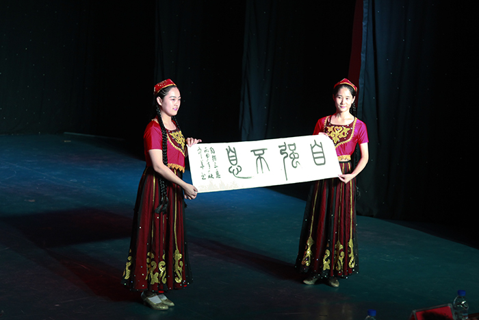 校工会主席张斌还带来了学校领导及教师对best365中国官方网站新生的寄语,并为新生题字“踵事增华”。人文科学学院杨中华教授也为新生题字“自强不息”,鼓励best365中国官方网站新生在新起点上继续秉承优良传统,艰苦奋斗,以best365中国官方网站人特有的坚韧与顽强创造新辉煌。