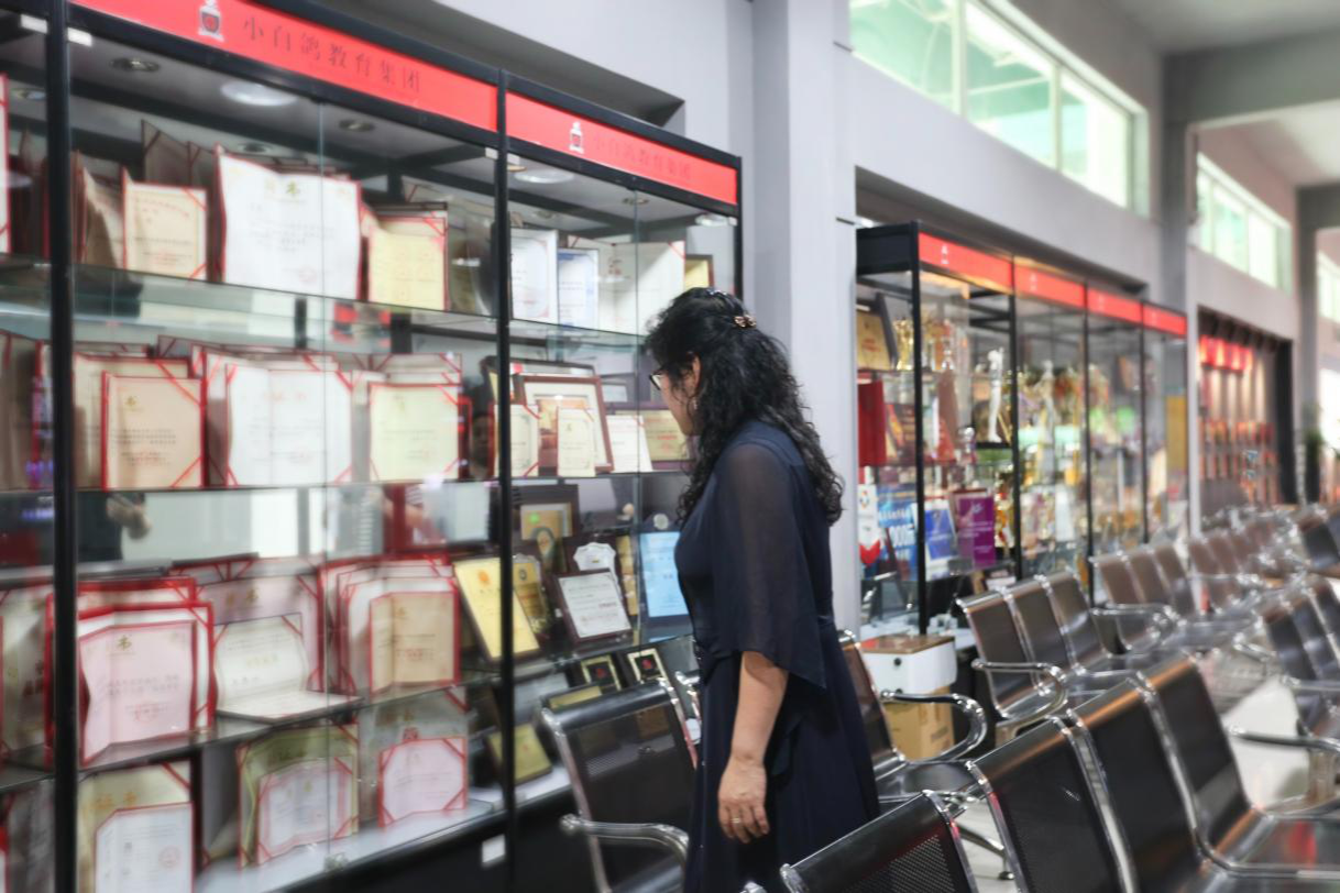 随后小白鸽教育集团董事长宋鸽女士及集团中层带领学院一行参观了小白鸽总校大院,小白鸽全国教学监控中心、家长等候区、休闲区、舞蹈教室、教师休息区。