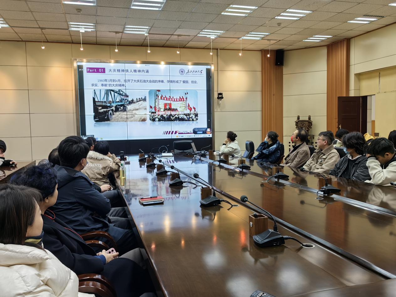 林庆华分别从大庆精神铁人精神内涵、新时期铁人精神时代意蕴、新时期艺术赋予铁人精神的新生命力和审美体验、新时期铁人精神艺术化呈现进一步探索等五个方面展开阐述,从理论到实践,深入浅出,运用了大量的历史资料和生动的实例图文并茂地讲解了铁人精神的形成过程和具体内涵,她指出,铁人精神的时代意蕴深厚,既具有历史厚重感,又富有时代特色。