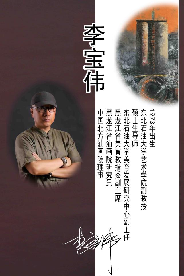李宝伟老师的油画作品主要以大庆工业遗存为创作出发点,通过对大庆的工业遗迹的油画创作,来表现大庆之今昔,体现以铁人王进喜第一代大庆创业人的丰功伟绩和辉煌历史。