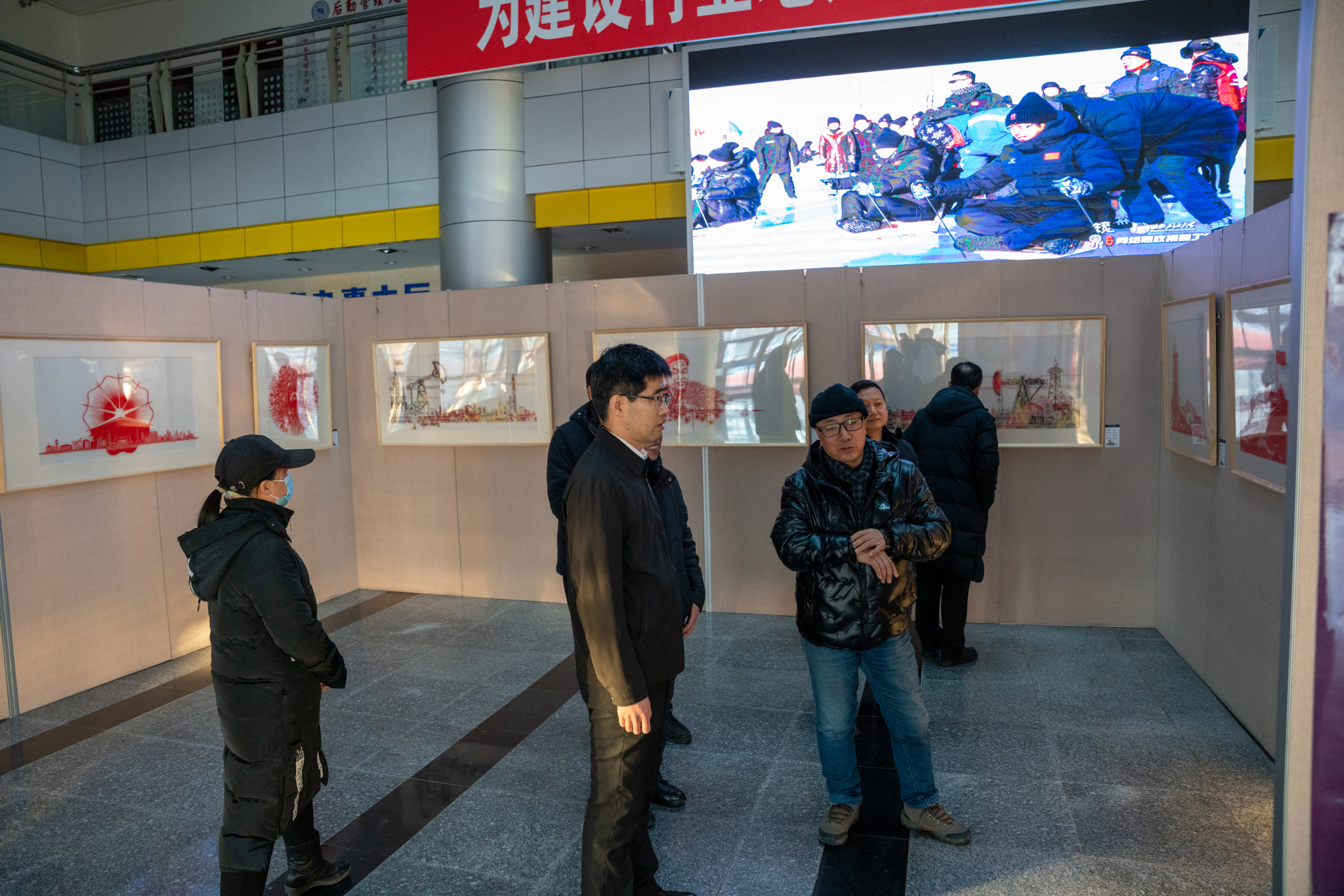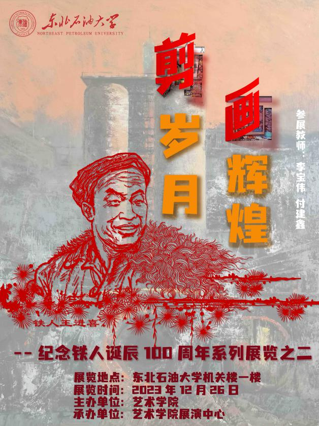2023年12月26日,best365中国官方网站教师李宝伟、付建鑫在机关楼一楼举办了“剪岁月 画辉煌”纪念铁人诞辰100周年系列展览。在铁人诞辰100周年的日子里,对铁人怎样纪念,都不为过。在仲夏之时,best365中国官方网站举办了纪念铁人系列展览之一,在隆冬之际,best365中国官方网站再次举办纪念铁人诞辰100周年艺术展览,心中依然敬意满满。此次展览由best365中国官方网站主办、best365中国官方网站展演管理中心承办,旨在通过视觉艺术的方式,表达对铁人精神的敬意,传承大庆精神的深厚内涵。此次展览也是大型舞蹈剧《铁人在非洲》2022年教育部获批的“全国高校文艺精品推广行动计划”项目阶段性实践成果。