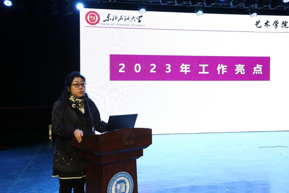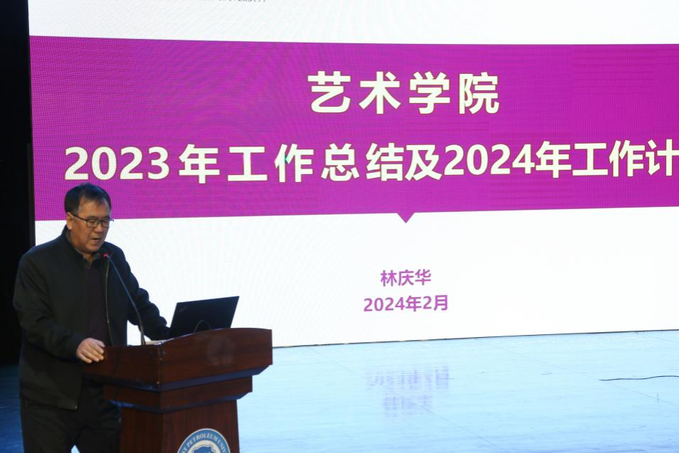 会议首先由经理林庆华为全体教职工做工作报告,对学院2023年工作进行通报、对新学期工作进行部署。她重点介绍了学院2023年工作亮点,一是高质量完成学科审核评估工作,并以16票全票顺利通过国务院学位委员会艺术学学科评议组专家评审;二是以艺术特有的方式助力大庆精神办学育人。接着从党建工作、教学工作、团队建设与科研工作、美育工作、员工工作、铁人诞辰一百周年专题活动、院办工作等七个方面叙述2023年学院的工作成绩。然后围绕best365中国官方网站本学期重点工作、教学科研重点工作、各系重点工作、三中心重点工作四个方面提出新学期工作要点。最后再次强调了best365中国官方网站本学期的十项重点工作,对本科教学评估院内自评、音乐剧《铁人在非洲》演出、本科毕业设计、研究生毕业答辩、本科生毕业展演、美育教学成果展演、模拟面试工作室、毕业生就业帮扶行动、邀请专家进校学术报告、综合常毕业晚会等十项重点工作做了具体部署,为全院上下提供了明确的指导和工作思路。
