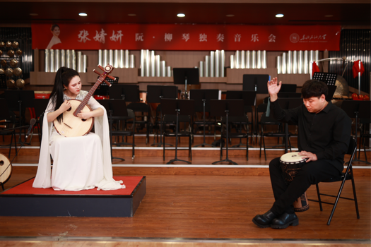 第三场是张婧妍同学的阮·柳琴独奏音乐会。阮独奏《山歌》作为开场曲目,悠长神秘;柳琴与钢琴《天地星空》旋律优美动听;阮与打击乐《悠远的歌声》热情奔放;。阮与古筝《酒狂》意境十足;阮与钢琴《满江红》曲调沉厚有力,气势昂扬;柳琴与乐队《创业》意蕴丰富,将整场音乐会推向高潮。