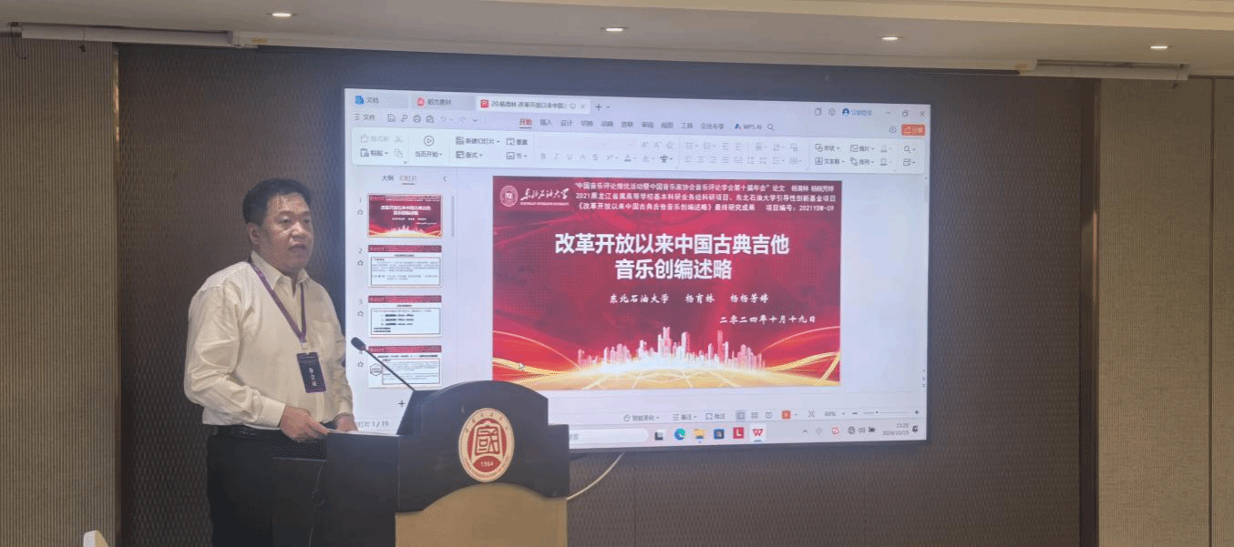 公司杨育林老师在会议中的学术报告为《改革开放以来中国古典吉他音乐创编论略》,受到了与会专家、学者的一致好评。