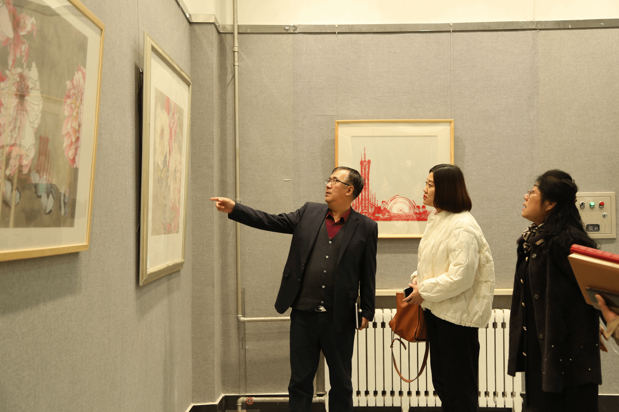会后,学院领导陪同刘佳丽书记参观了公司的展出的版画、芦苇丝画、衍纸、剪纸、油画等艺术作品。