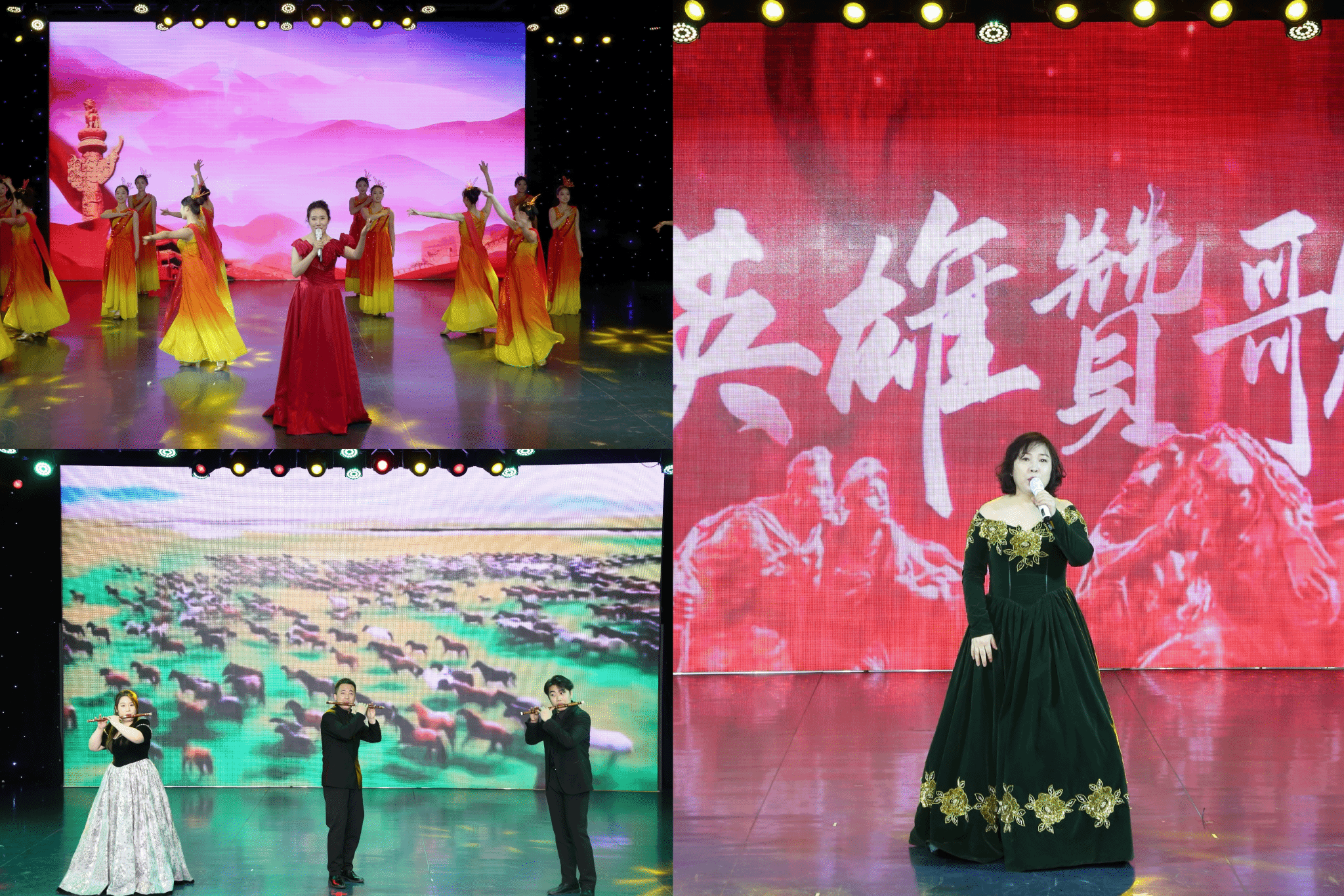 女高音独唱《我爱你中国》礼赞伟大祖国、凝聚奋进力量;竹笛重奏《扬鞭催马运粮忙》展现青年学子朝气蓬勃的精神风貌;女高音独唱《英雄赞歌》致敬革命先烈,传承不朽的英雄精神。