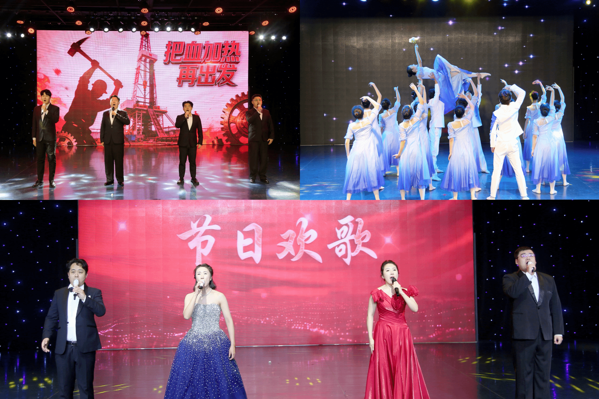 男声四重唱《把血加热再出发》唱响新时代青年勇担使命、砥砺前行的奋进强音;当代舞《茉莉芬芳》尽显青年学子昂扬向上的青春风采;男女声四重唱《节日欢歌》礼赞盛世华章,为整场红色主题晚会画上圆满句号。