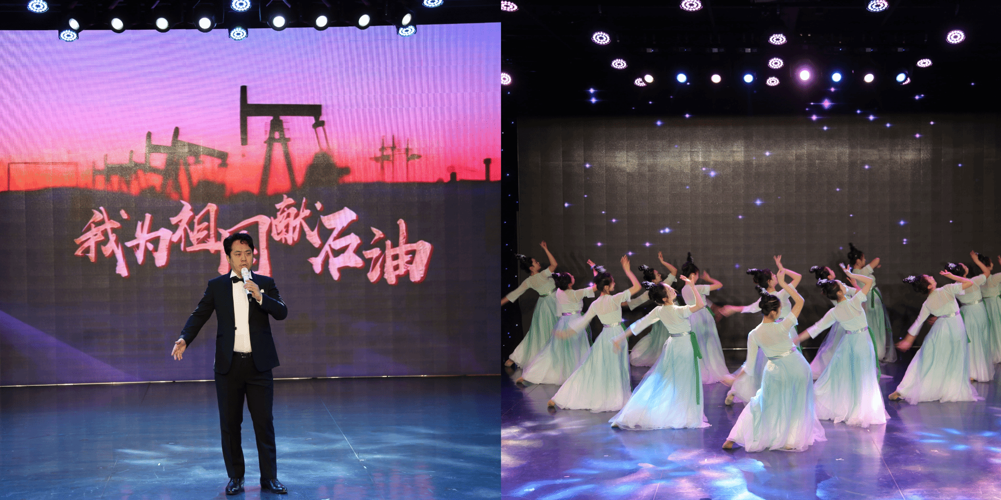 男中音独唱《我为祖国献石油》传承艰苦奋斗的红色基因;古典舞《象山水月》尽显东方古典韵味与文化底蕴。